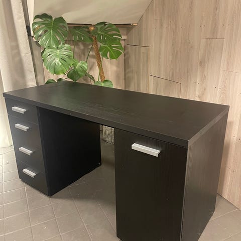 Svart skrivebord, har litt bruksmerker (se bilde), men ikke veldig synlig.
