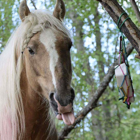 Trivelig hoppe som har levd for det meste på utegang hos oss, vi har henne også i perioder på boks , for å trene på det . Hun fungerer fint med begge deler men vi ønsker å finne et hjem med minst en venn å gå sammen med.