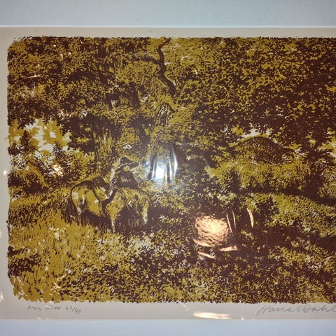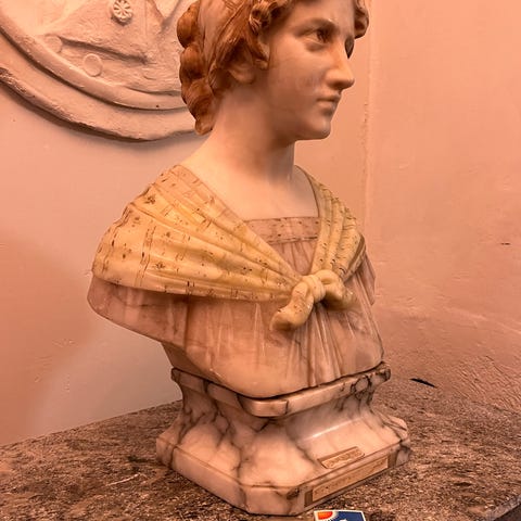 Vakker gullfarget byste med sommerfugler på. 76 cm. høy og ca. 3 kg.