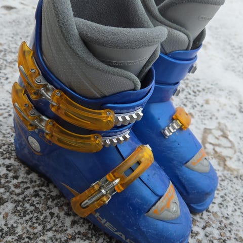 Støvler til slalåm. Pris er 350kr.