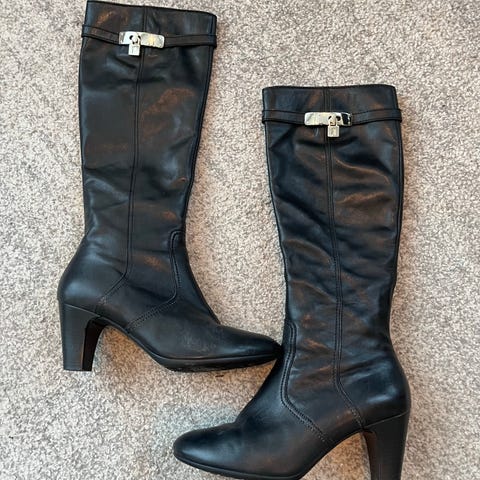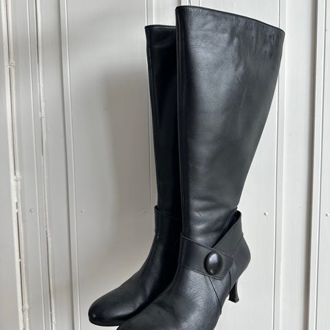 Lite brukte støvletter i sort skinn. Str 39, men kjennes kanskje som en litt stor 39?