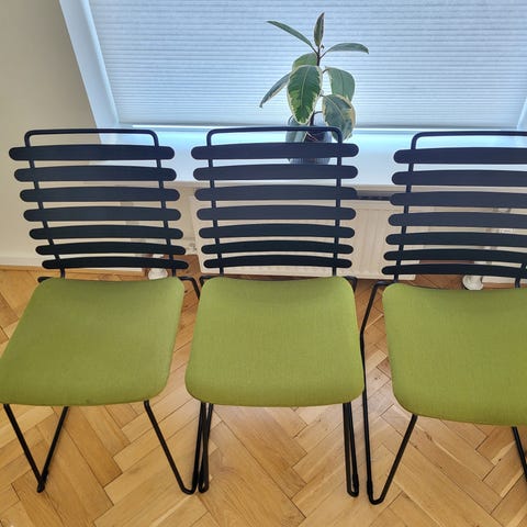 Kjempefin stol laget i Norge med nytrukket stoffpute fra Gudbrandsdal uldvarefabrikk. Stolen er såpebehandlet furu. En nettere versjon av Krognæs stolen og passer dermed de fleste steder.