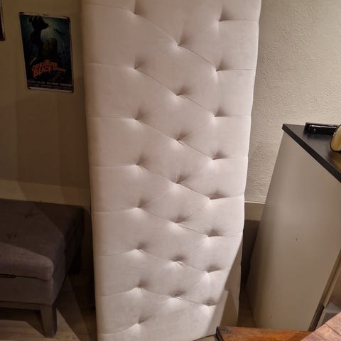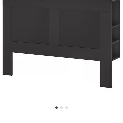 Sort sengegavl fra Ikea. Passer til seng på 180cm. Full lengde er 260cm. Nattbord og (flyttbare) hyller.