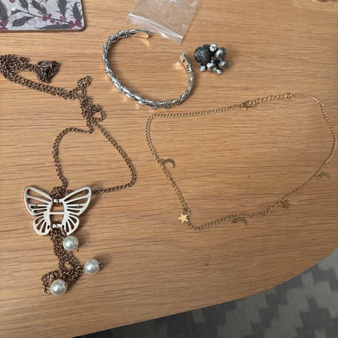 Veldig pent armbånd og anheng. Rav med antagelig sølv. Vanskelig og tyde stempel. Kan sendes mot at kjøper betaler porto.
