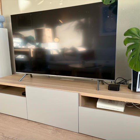 IKEA Bestå TV-benk i lys eik og høyglans kremhvit