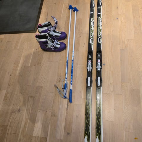 Lenge på ski 100cm, staver 85cm.brukt av våres jente.