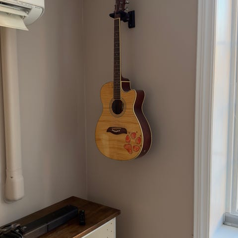 Akustisk gitar med tradisjonelt design. Overraskende god lyd til prisen. Installert pick-up. Gitaren trenger litt kjærlighet og et sett nye strenger, men vil med det være så god som ny.