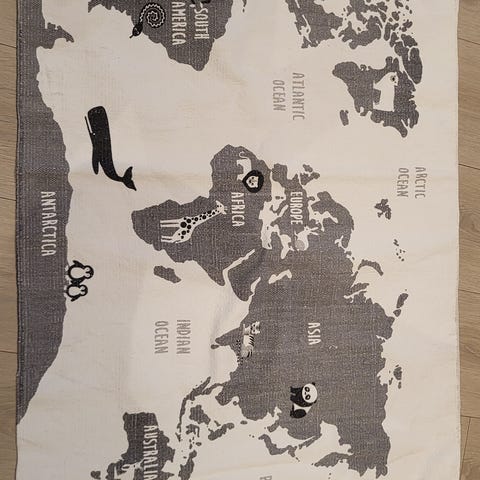 Gulvmatte til barnerom med verdenskart motiv.