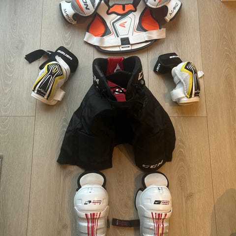 Startsett til ishockey for barn ca 4-6 år. Lurt å komme for å prøve det. Selges kr 500 til sammen, kun hjelm kr 150. Hentes på Heimdal.