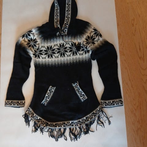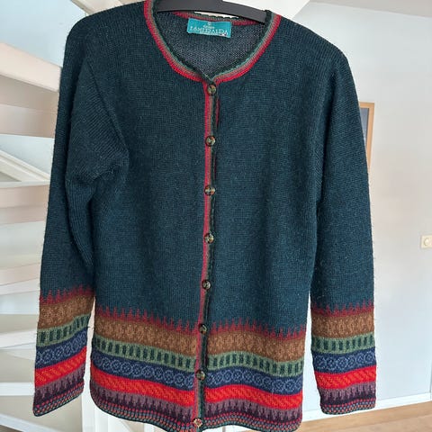 Varm og lett strikkegenser kjøpt på marked i Sør Amerika - Peru. Klassisk andinsk mønster og fine farger. Genseren er svært varm uten å være tung.
