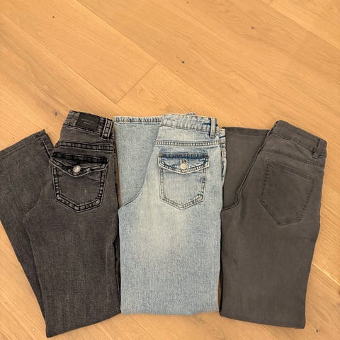Pakke med jenteklær i størrelse 13-14 år ish. Bukser i str 36/xxs og overdeler primært i S. Noen klær er veldig lite brukt, andre litt mer brukt. Klær fra blant annet HM, stradivarius (Spania), Cubus, new yorker.