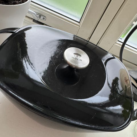 Rødemaljert støpejernsgryte selges. Som ny, kun et lite hakk på på det ene håndtaket, elles hel og fin! Dette er en solid gryte som fordeler varmen jevnt og gjør maten ekstra saftig. Kan brukes på alle varmekilder, fra induksjon til bål.