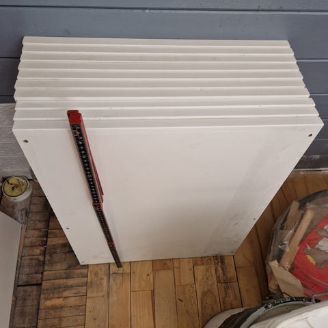 Ubrukte, nye hyllebrett, hvite, fra IKEA. Passer til Pax garderobesystem.