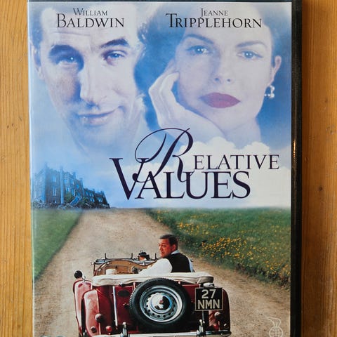 DVD-film med tittelen Relative Values. Inneholder film i full frame 1.33:1 format. Undertekster er tilgjengelige på engelsk, norsk, svensk, dansk og finsk. Passer for aldersgruppen fra 15 år og oppover. Sender på ønsket måte.