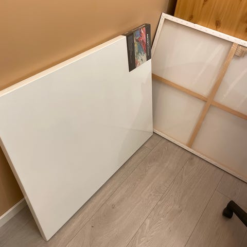 Malerlerret 24x30 cm i hvitt, laget av bomull. Passer til ulike maleteknikker og kunstprosjekter, med ramme for enkel oppheng.