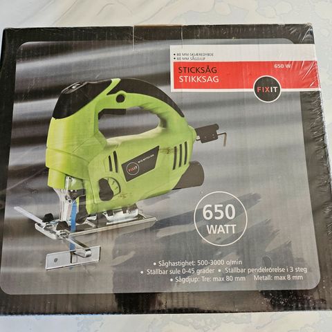M-Pec 500 W stikksag med variabel hastighet på 800-3000 slag per minutt. Produktet leveres i originalemballasje og har funksjoner som gjør den egnet til presisjonskutting i ulike materialer.