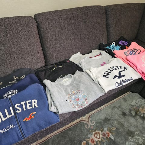 Selger 13 gensere i størrelse XXS-S. De er svært lite brukt, mange har jeg kun prøvd på. Har ligget i oppbevaringsbokser så dermed litt skrukkete.