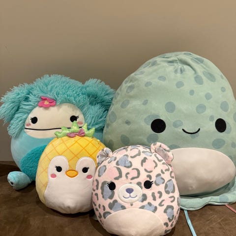Squishmallows Nessie myk kosedyr i grønnfarge med hvite prikker. Laget av mykt materiale, egnet som barneleke eller kosedyr.