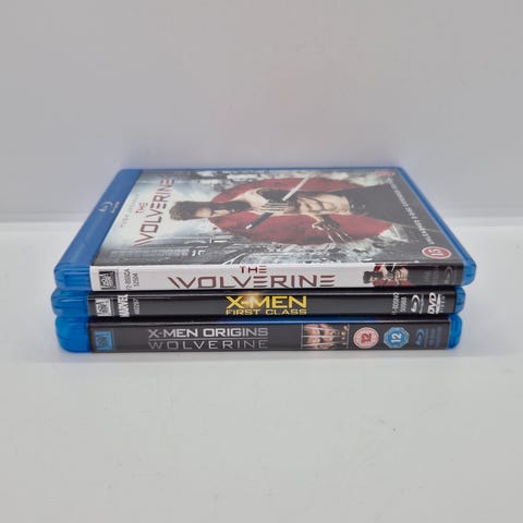 Samling av Blu-ray filmer inkludert X-Men Origins Wolverine og flere andre actionfilmer. Filmene er i Blu-ray format og inneholder ulike titler innen action- og eventyrsjangeren.