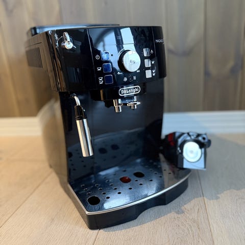 Kenwood juicepresse i sølv. Designet for effektiv pressing av juice fra frukt og grønnsaker. Utstyrt med dryppstopp-funksjon og enkel betjening via knapper på siden.