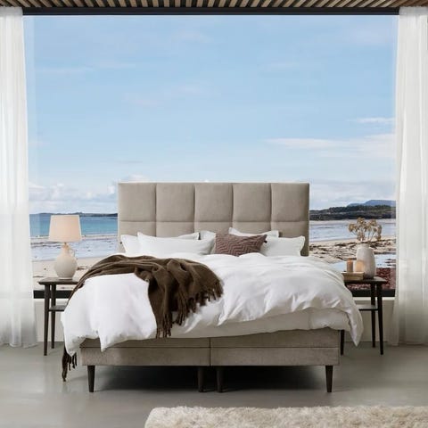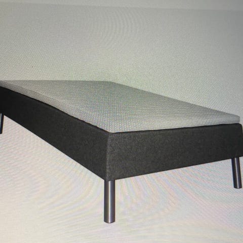 Stor seng 210 x 210 selges. Sengen er mørk grå med sorte bein.