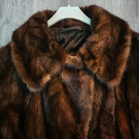 Minkjakke uten slitasje selges på vegne av min bestemor.