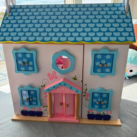 Lundby dukkehus med flere rom og møbler. Inneholder detaljerte interiører som stue, kjøkken, bad og soverom. Passer for barn som leker med dukker og miniatyrmøbler.