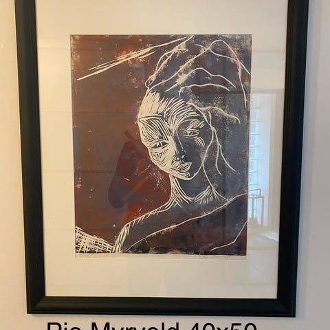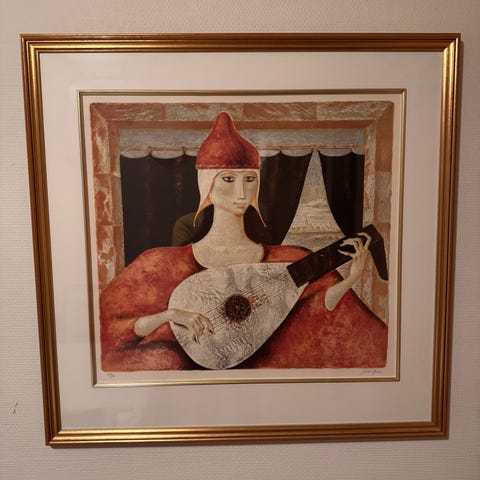 Litografi kunstverk med ramme 45*48 cm