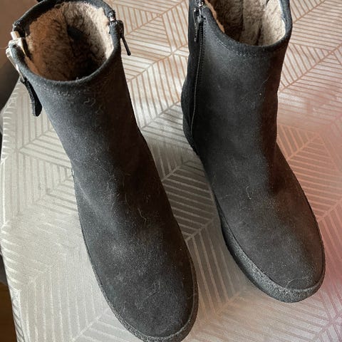 Nude of Scandinavia Vinterstøvler i størrelse 40. Støvlene er svarte i semsket skinn og laget for vinterbruk. Lite brukt, men noen små flekker. Ny pris er 3790 kr (se https://lillevinkelsko.no/host-vintersko/nude-scandinavia/nude-win004sr-sortrod). Kan hentes.