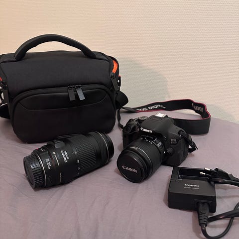 Har du lyst på et solid speilreflekskamera med masse utstyr, eller har du vurdert å begynne med fotografering med ett skikkelig kamera, men synes at det blir for dyrt å kjøpe nytt, så er dette kanskje noe for deg. Denne kamerapakka har vært min følgesvenn i noen år nå og selges på grunn av systembytte. Har vært dønn solid og har aldri sviktet meg så sant batteriene har vært ladet. Har vært med i alle årstider og gitt gode resultater for meg som er en ivrig hobbyfotograf.