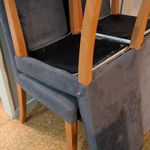 4 stoler fra Bohus selges samlet kr. 1000 (kostet ny 4000). Stolene er robust og gode å sitte i. Stolene har noen kloremerker etter katt og noen flekker her og der.