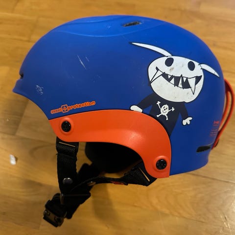 Slalåmhjelm i størrelse S/M (55-58 cm). Selges til en rimelig pris. Noen synlige bruksmerker selges til 100 kr.