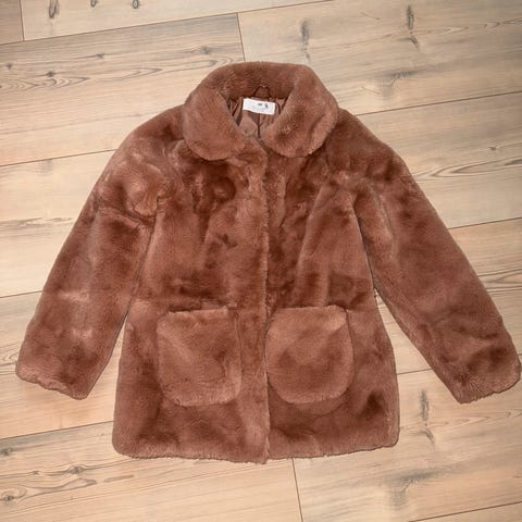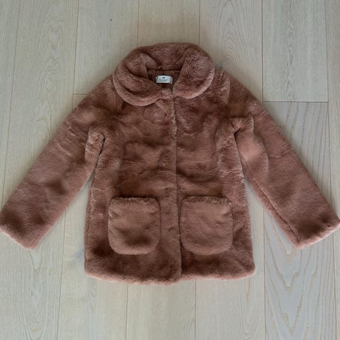 Nydelig «pels» jakke i gammelrosa. Deilig og myk. Lite brukt så det er ingen skader på den. Ser ut som ny.
