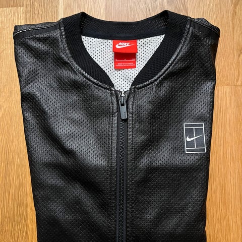 Nike jakke i størrelse S. Jakken er rød og har hette, egnet for utendørs bruk. Pen brukt