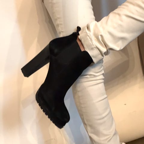 Støvlettene er pent brukt, men har noe synlig slitasje under hælene. Overdelen fremstår fortsatt fin. Se bilder for detaljer.