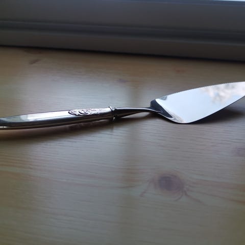 Sølvskje med en lengde på 12 cm, laget i sølv.