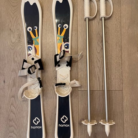 Selger en skipakke til de aller minste.. ski/staver. Brukt kun et par ganger. Som nye. Se bilde,