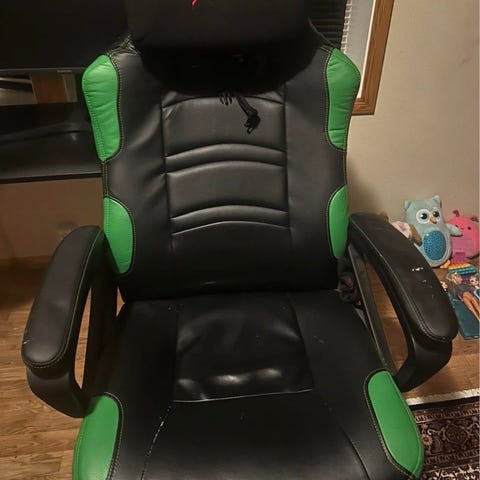 Brun stol i imitert skinn, metallbein. Ny pris kr 1500, 3 år gammel. Lite brukt.