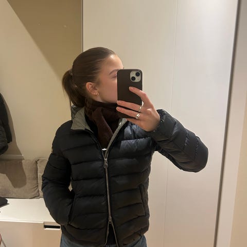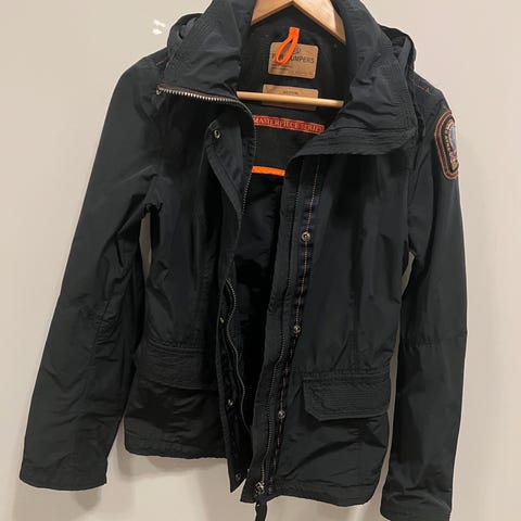 Jakken er pent brukt og i god stand, uten hull, rifter eller flekker. Alle glidelåser og borrelåser fungerer som de skal.