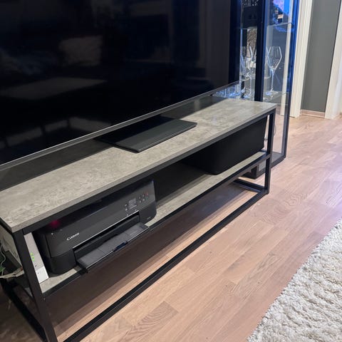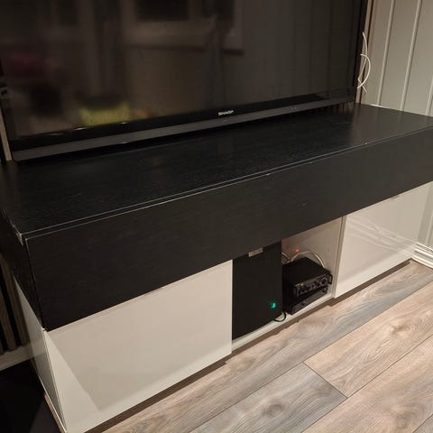 Selger tv benk billig, alle skuffene fungerer som den skal, men den ene hengslen har en knekt plastikkbit, men fungerer som den skal.