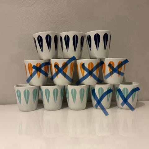 Fra 50 - 70-tallet. Produsert i Leningrad. To begre feilfrie, to med et par mindre avskallinger øverst (som vist på siste bilde). Høyde 4 cm, diameter 3 cm. Flotte begre.