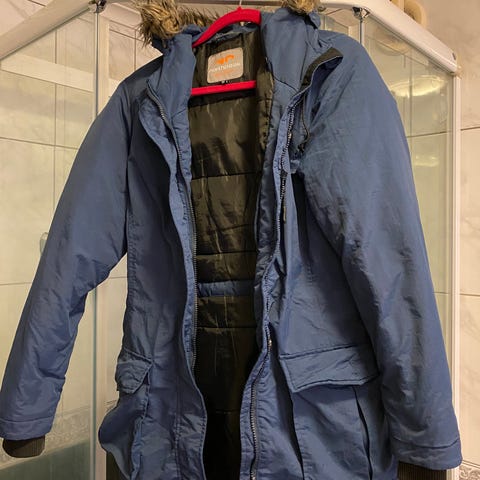 Dunjakke fra Twentyfour gis bort. Den er noe falmet i fargen og har en liten rift som er tapet bak på den ene armen (se bilde). Str 36. Vil si at den er liten i størrelsen
