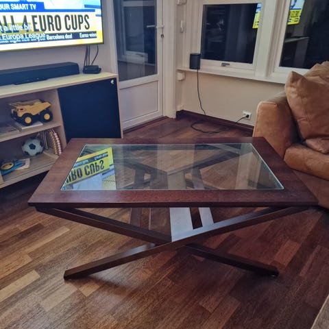 Fint og rundt, bordplaten kan snurres rundt, ganske praktisk hvis man har mat på bordet