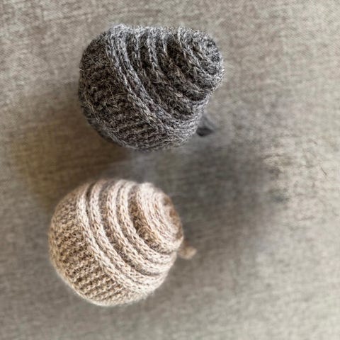 Lengde og garntype står på bilder.
