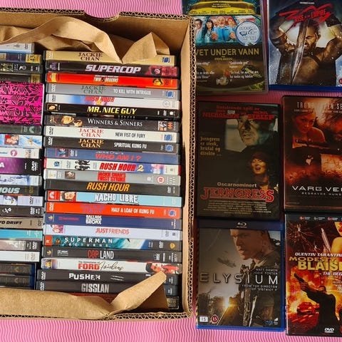 DVD-samling i plastboks
