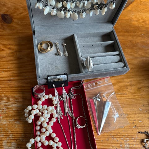2 armbånd (19 cm) og 3 kjeder (50 cm, 50 cm og 60 cm) i 925 sølv. Alle er pent brukt eller aldri brukt, eldste er 5 år gamle og de nyeste ble kjøpt i 2025.