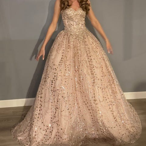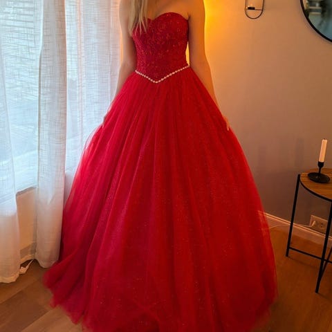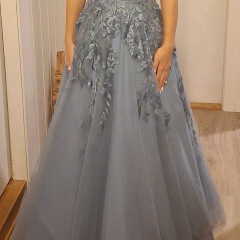 Nydelig lysegul ballkjole fra LYCHINOR , i str.M-L. Snøring i rygg. Brukt kun 1 kveld. Kan sendes. Ny pris 7500kr.
