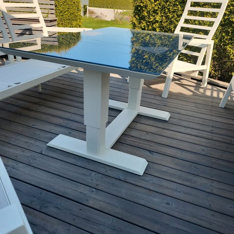 Hjørnesofa av god kvalitet med puter som tåler regn. Disse har likevel stått under tak i sommerhalvåret og vært lagret inne i vinterhalvåret, og er derfor i veldig bra stand.