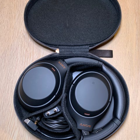 Følger med etui og flyadapter, lades med USB-C. Nypris 3190kr
