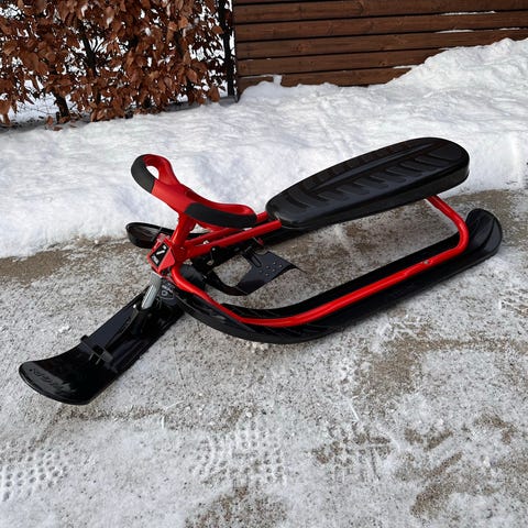 Stiga Snowracer Pro selges. I god stand bortsett fra en liten sprekk i forskien, men den kan enkelt byttes når det evt blir behov for det.